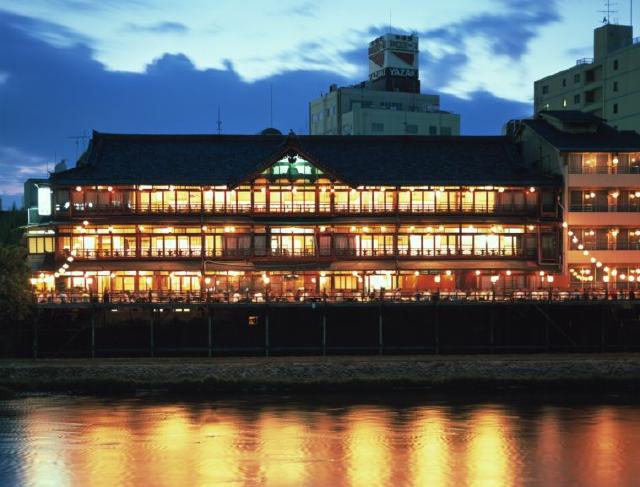 日本最大級を誇る200名収容の「床」、京都の「鴨川の床」は、夏の風物詩と言われ、夏の間だけ組み建てられます。昔冷房のなかった頃、京都人は鴨川の河原に床几を並べて、一時の涼を楽しむ知恵を生み出しました。時は流れて、冷房の普及した今日でも、自然の川風に吹かれて夏の京の夜を楽しんで頂いております。